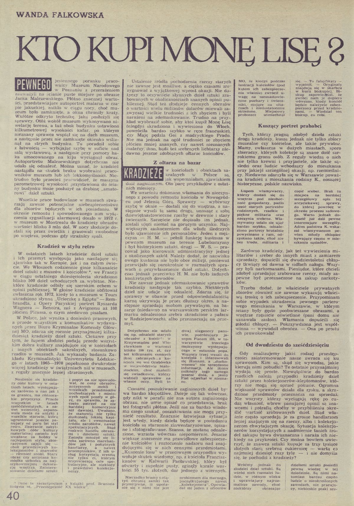 Archiwum / Artykuł nr 1654-55 (51-52/1976) 838/881 Podziel się Tytuł Kto kupi Monę Lisę? Autor Wanda Falkowska Kategoria Artykuł Artykuł z numeru 1654-55 (51/1976) Data wydania 19 grudnia 1976