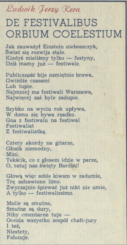 Archiwum / Rozmaitości [old] nr 1683 (28/1977) 70601/123969 Podziel się Tytuł De festivalibus orbium coelestium Autor Ludwik Jerzy Kern Rubryka Rozmaitości [old] Artykuł z numeru 1683 (28/1977) Data wydania 10 lipca 1977