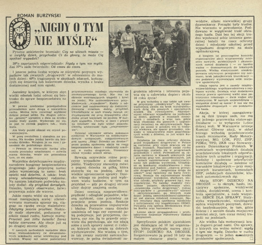 Archiwum / Społeczeństwo nr 1675 (20/1977) 31/236 Podziel się Tytuł Nigdy o tym nie myślę Autor Roman Burzyński Kategoria Społeczeństwo Artykuł z numeru 1675 (20/1977) Data wydania 15 maja 1977 Tagi motoryzacja wypadki bezpieczeństwo dziecko na drodze