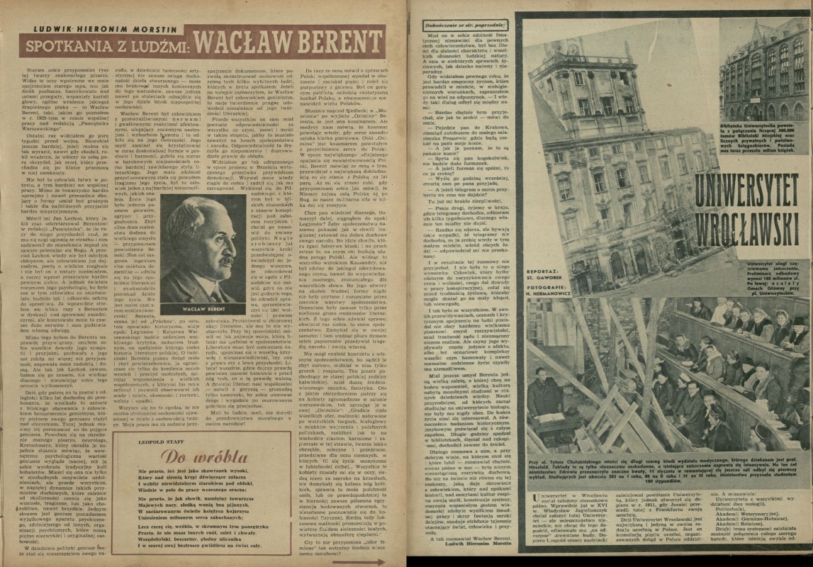 Archiwum / Artykuł nr 47 (09/1946) 15/70 Podziel się Tytuł Spotkania z ludźmi: Wacław Berent Autor Ludwik Hieronim Morstin Kategoria Artykuł Artykuł z numeru 47 (9/1946) Data wydania 3 marca 1946 Tagi Wacław Berent