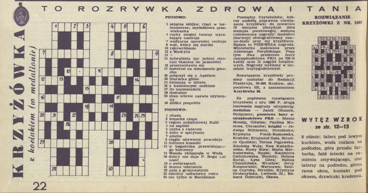 Archiwum / Krzyżówka z kociakiem nr 1688 (33/1977) 33/49 Podziel się Tytuł Krzyżówka z kociakiem Rubryka Krzyżówka z kociakiem Artykuł z numeru 1688 (33/1977) Data wydania 14 sierpnia 1977