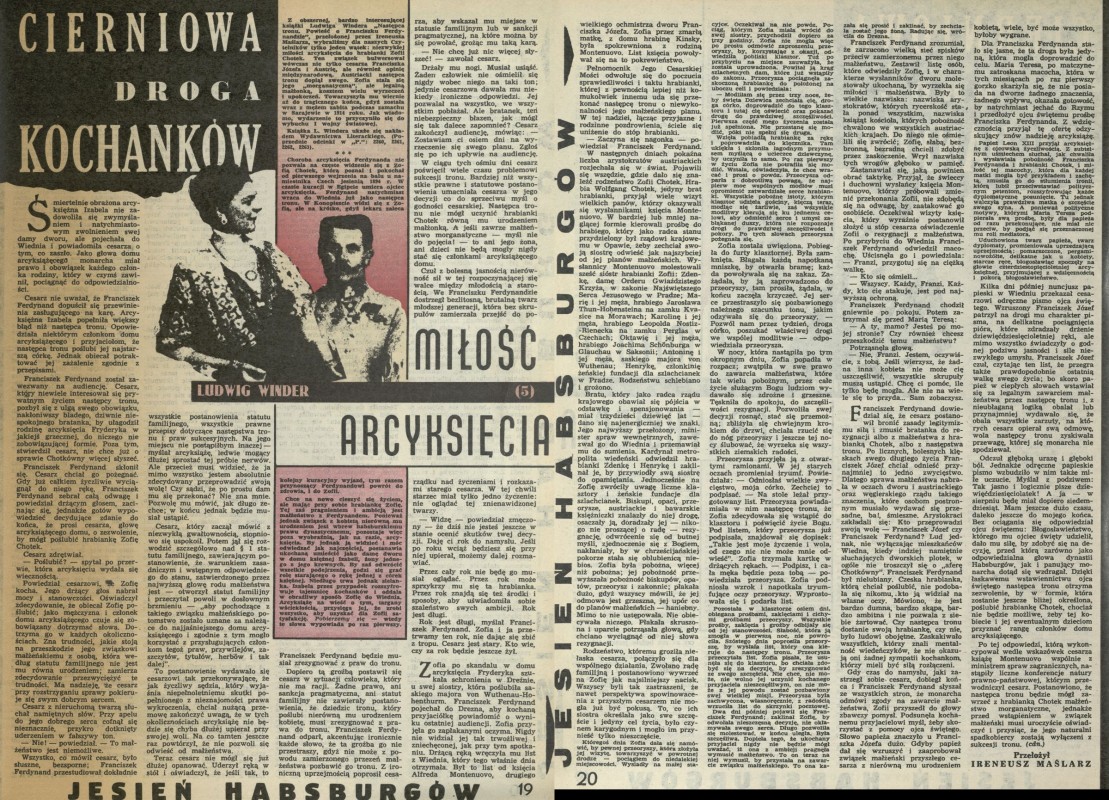 Archiwum / Opowiadanie nr 2264 (44/1988) 17/20 Podziel się Tytuł Cierniowa droga kochanków Autor Ireneusz Maślarz Kategoria Opowiadanie Artykuł z numeru 2264 (44/1988) Data wydania 30 października 1988 Tagi Habsburgowie dynastia Habsburgów Ludwig Winder Hrabia Wurmbrand