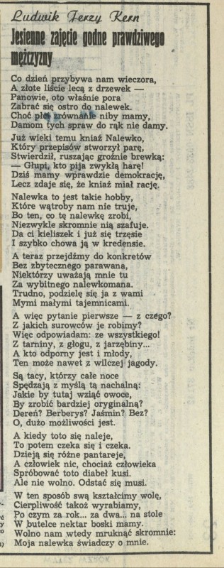 Archiwum / Rozmaitości [old] nr 2264 (44/1988) 84/347 Podziel się Tytuł Jesienne zajecie godne prawdziwego mężczyzny Autor Ludwik Jerzy Kern Rubryka Rozmaitości [old] Artykuł z numeru 2264 (44/1988) Data wydania 30 października 1988 Tagi Ludwik Jerzy Kern poezja