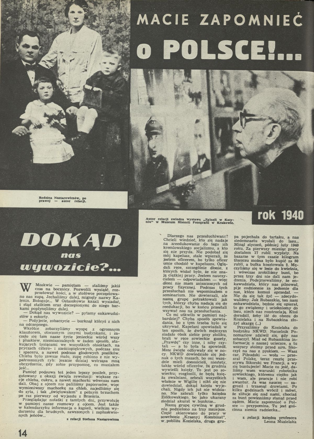 Archiwum / Relacja nr specjalny 3/1990 03/798 Podziel się Tytuł Dokąd nas wywozicie?... Macie zapomnieć o Polsce Kategoria Relacja Artykuł z numeru nr specjalny 3/1990 Data wydania 1 stycznia 1990 Tagi Katyń zbrodnia katyńska zbrodnia komunistyczna