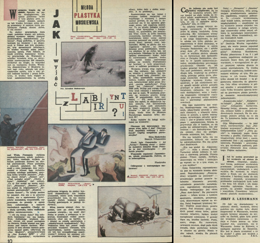 Archiwum / Kultura nr 2265 (45/1988) 10/34 Podziel się Tytuł Młoda plastyka moskiewska. Jak wyjść z labiryntu Autor Jerzy Z. Lessman Kategoria Kultura Artykuł z numeru 2265 (45/1988) Data wydania 6 listopada 1988 Tagi Ilona Gansowska plastyka sztuka Sergiej Wołochow sztuka rosyjska