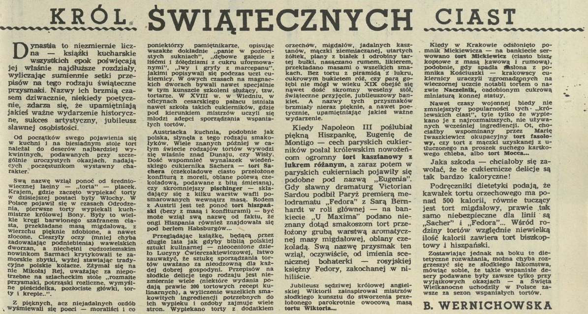 Archiwum / Artykuł nr 2028 (17/1984) 56/186 Podziel się Tytuł Król świątecznych ciast Autor Bogna Wernichowska Kategoria Artykuł Artykuł z numeru 2028 (17/1984) Data wydania 22 kwietnia 1984 Tagi kuchnia gastronomia historia tort ciasto deser