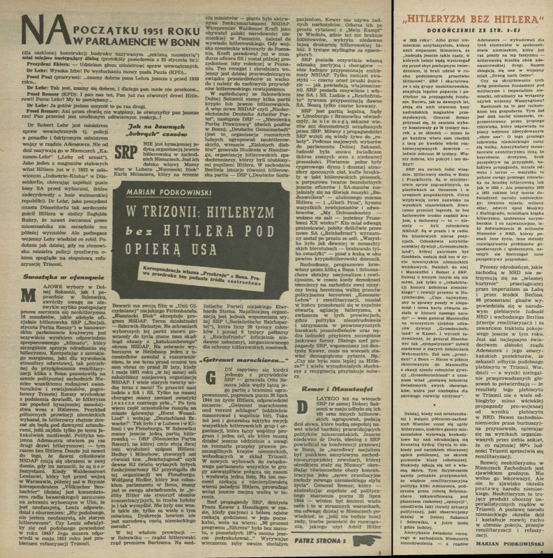 Archiwum / korespondencja własna "Przekroju" nr 324 (26/1951) 10586/123969 Podziel się Tytuł W Trizonii: hitleryzm bez Hitlera pod opieką USA Autor Marian Podkowiński Rubryka korespondencja własna "Przekroju" Artykuł z numeru 324 (26/1951) Data wydania 24 czerwca 1951