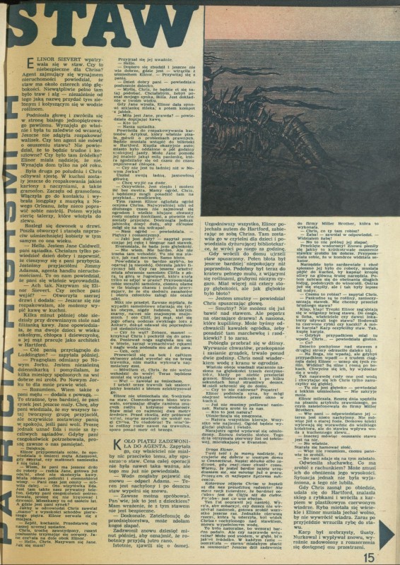 Archiwum / Opowiadanie nr 1698 (43/1977) 48/56 Podziel się Tytuł Staw Autor Patricia Highsmith Stella Varcaby Kategoria Opowiadanie Artykuł z numeru 1698 (43/1977) Data wydania 23 października 1977