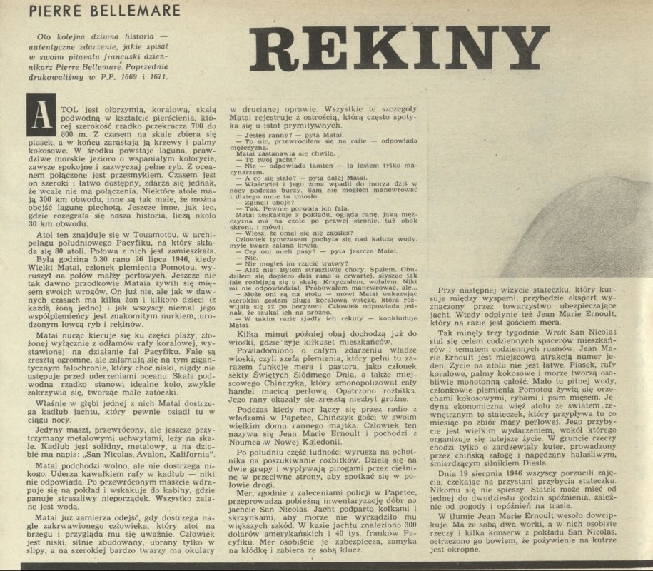 Archiwum / Relacja nr 1675 (20/1977) 24/61 Podziel się Tytuł Rekiny Autor Pierre Bellemare Kategoria Relacja Artykuł z numeru 1675 (20/1977) Data wydania 15 maja 1977