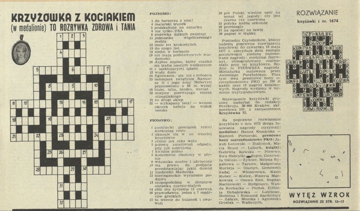 Archiwum / Krzyżówka z kociakiem nr 1675 (20/1977) 36/110 Podziel się Tytuł Krzyżówka z kociakiem Rubryka Krzyżówka z kociakiem Artykuł z numeru 1675 (20/1977) Data wydania 15 maja 1977 Tagi krzyżówka rozrywka