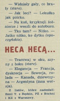 Archiwum / Heca hecą nr 1709 (02/1978) 08/147 Podziel się Tytuł Heca hecą Rubryka Heca hecą Artykuł z numeru 1709 (2/1978) Data wydania 8 stycznia 1978 Tagi powiedzenia powiedzonka