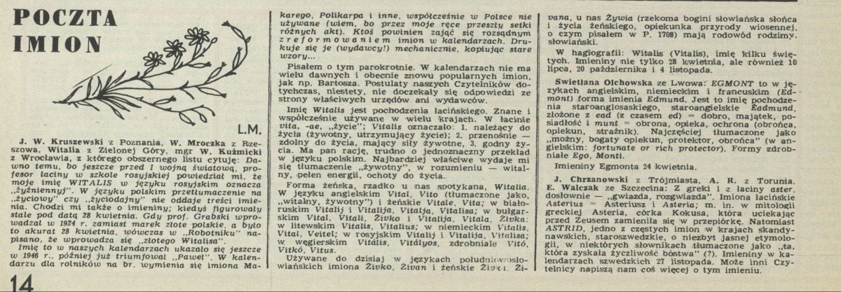 Archiwum / Poczta imion nr 1713 (06/1978) 71874/123969 Podziel się Tytuł Poczta imion Rubryka Poczta imion Artykuł z numeru 1713 (6/1978) Data wydania 5 lutego 1978