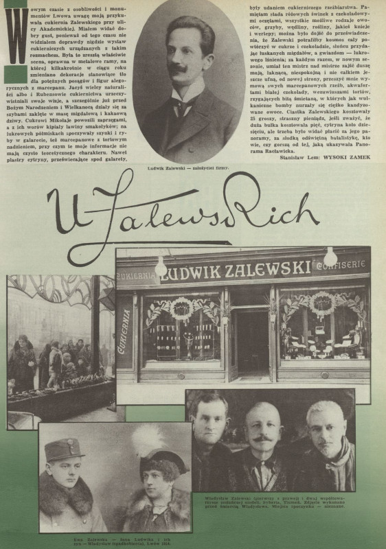 Archiwum / Artykuł nr specjalny 3/1991 98263/123969 Podziel się Tytuł U Zalewskich Kategoria Artykuł Artykuł z numeru nr specjalny 3/1991 Data wydania 1 stycznia 1991 Tagi Lwów historia cukiernia Ludwik Zalewski Stanisław Lem