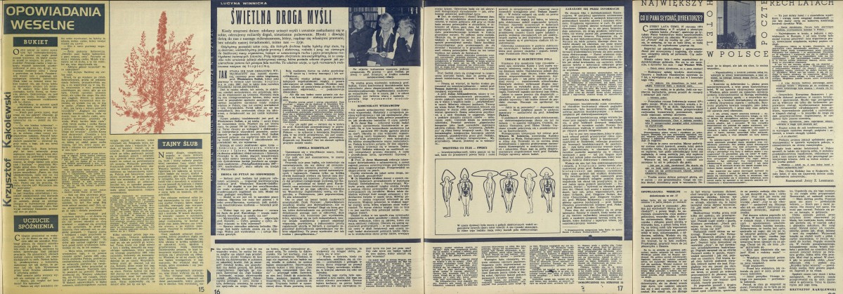 Archiwum / Opowiadanie nr 1711 (04/1978) 06/50 Podziel się Tytuł Opowiadania weselne Autor Krzysztof Kąkolewski Kategoria Opowiadanie Artykuł z numeru 1711 (4/1978) Data wydania 22 stycznia 1978 Tagi wesele ślub