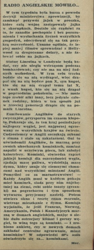 Archiwum / Rozmaitości [old] nr 49 (11/1946) 01/55 Podziel się Tytuł Radio angielskie mówiło... Autor Mor. Rubryka Rozmaitości [old] Artykuł z numeru 49 (11/1946) Data wydania 17 marca 1946 Tagi jajka w proszku Londyn statua Lincolna węgiel ogrzewanie Anglia