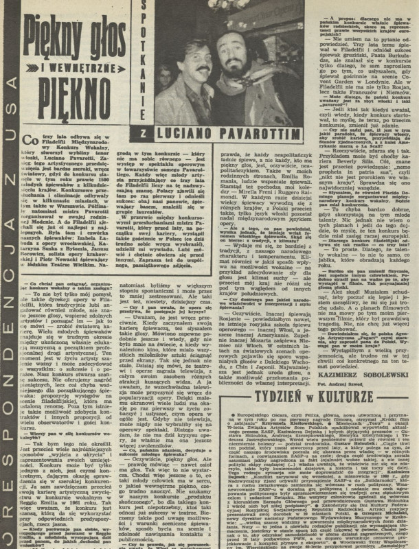 Archiwum / Rozmowy „Przekroju” nr 2271 (51/1988) 268/317 Podziel się Tytuł Piękny głos i wewnętrzne piękno. Spotkanie z Luciano Pavarotti Autor Kazimierz Sobolewski Rubryka Rozmowy „Przekroju” Artykuł z numeru 2271 (51/1988) Data wydania 11 grudnia 1988 Tagi Luciano Pavarotti muzyka śpiew Piotr Nowacki opera