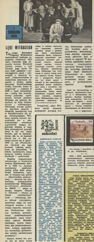 Archiwum / Teatr nr 2271 (51/1988) 25/64 Podziel się Tytuł Z teatralnego afisza: Lęki Witkacego Autor mars Rubryka Teatr Artykuł z numeru 2271 (51/1988) Data wydania 11 grudnia 1988 Tagi teatr Witkacy