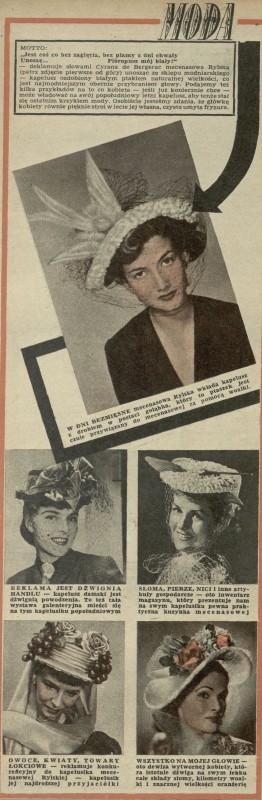 Archiwum / Moda nr 171 (29/1948) 4/4 Podziel się Tytuł Moda Rubryka Moda Artykuł z numeru 171 (29/1948) Data wydania 18 lipca 1948 Tagi moda damska kapelusze mecenasowa Rylska