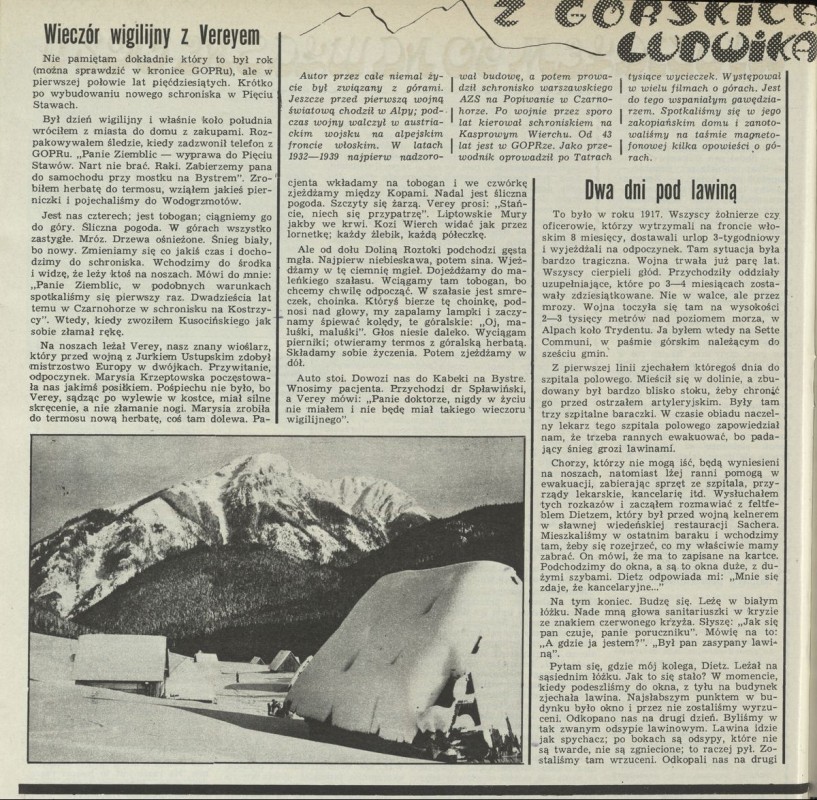 Archiwum / Artykuł nr 1706-7 (51-52/1977) 71591/123969 Podziel się Tytuł Z górskich wspomnień Ludwika Ziemblica Autor Jan Kalkowski i Dobiesław Walknowski Kategoria Artykuł Artykuł z numeru 1706-7 (51/1977) Data wydania 18 grudnia 1977