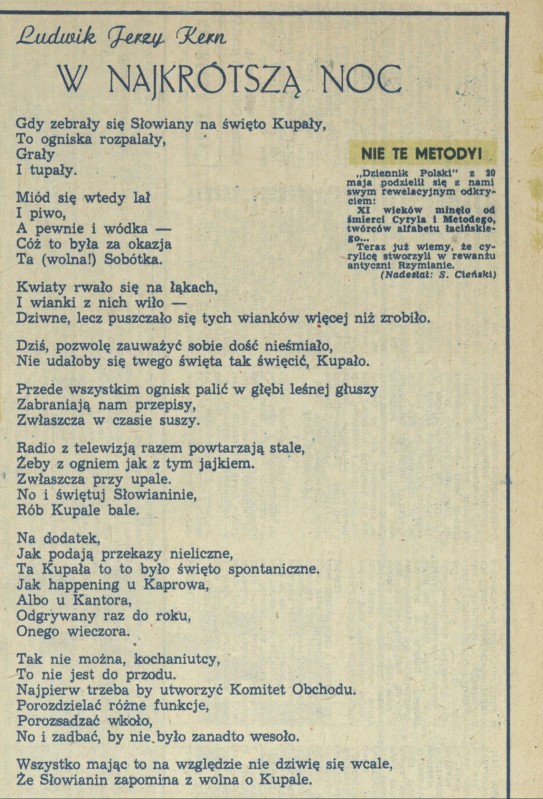 Archiwum / Rozmaitości [old] nr 1733 (26/1978) 28/226 Podziel się Tytuł W najkrótszą noc Autor Ludwik Jerzy Kern Rubryka Rozmaitości [old] Artykuł z numeru 1733 (26/1978) Data wydania 25 czerwca 1978