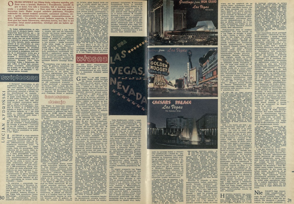 Archiwum / korespondencja własna "Przekroju" nr 1758-60 (51-53/1978) 68/626 Podziel się Tytuł Z USA, Las Vegas, Nevada Autor Lucjan Kydryński Rubryka korespondencja własna "Przekroju" Artykuł z numeru 1758-60 (51/1978) Data wydania 17 grudnia 1978