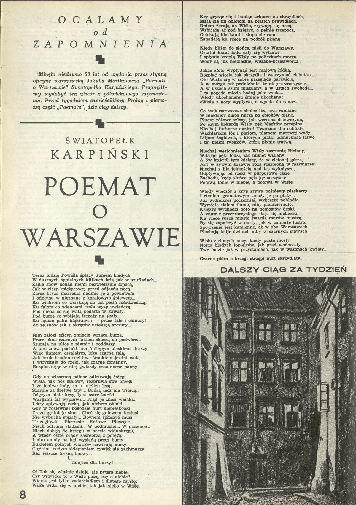 Archiwum / Poezja nr 2273 (01/1989) 93472/123969 Podziel się Tytuł Ocalamy od zapomnienia Kategoria Poezja Artykuł z numeru 2273 (1/1989) Data wydania 1 stycznia 1989 Tagi Światopełk Karpiński Poemat o Warszawie
