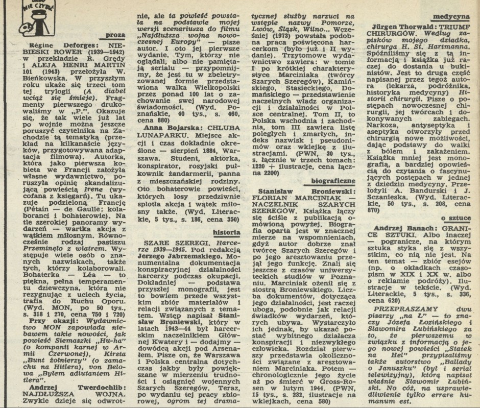 Archiwum / Czytać albo nie czytać? nr 2273 (01/1989) 1410/1866 Podziel się Tytuł Czytać albo nie czytać? Autor jki Rubryka Czytać albo nie czytać? Artykuł z numeru 2273 (1/1989) Data wydania 1 stycznia 1989 Tagi Stanisław Broniewski Anna Bojarska Andrzej Banach