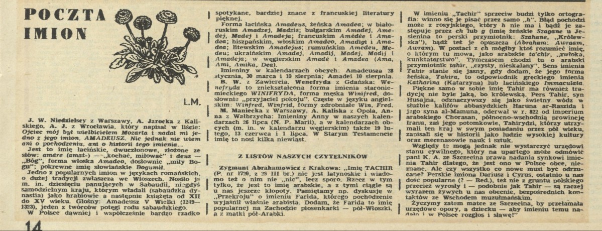 Archiwum / Poczta imion nr 1723 (16/1978) 72257/123969 Podziel się Tytuł Poczta imion Rubryka Poczta imion Artykuł z numeru 1723 (16/1978) Data wydania 16 kwietnia 1978