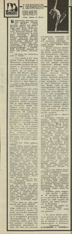 Archiwum / Rozmowy „Przekroju” nr 1726 (19/1978) 72388/123969 Podziel się Tytuł Rozmowa z Gerardem Wilkiem Autor Kazimierz J. Newman Rubryka Rozmowy „Przekroju” Artykuł z numeru 1726 (19/1978) Data wydania 7 maja 1978 Tagi balet teatr