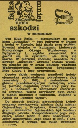 Archiwum / Fajka mniej szkodzi nr 2274 (02/1989) 93522/123969 Podziel się Tytuł Fajka mniej szkodzi Autor Zbigniew Turek Rubryka Fajka mniej szkodzi Artykuł z numeru 2274 (2/1989) Data wydania 8 stycznia 1989 Tagi fajka calabash fajczarze