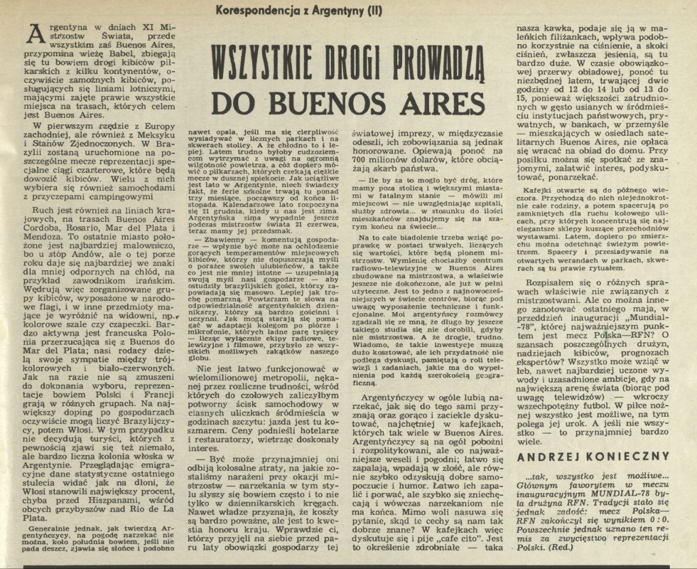 Archiwum / korespondencja własna "Przekroju" nr 1731 (24/1978) 18/29 Podziel się Tytuł Wszystkie drogi prowadzą do Buenos Aires Autor Andrzej Konieczny Rubryka korespondencja własna "Przekroju" Artykuł z numeru 1731 (24/1978) Data wydania 11 czerwca 1978 Tagi Argentyna podróż