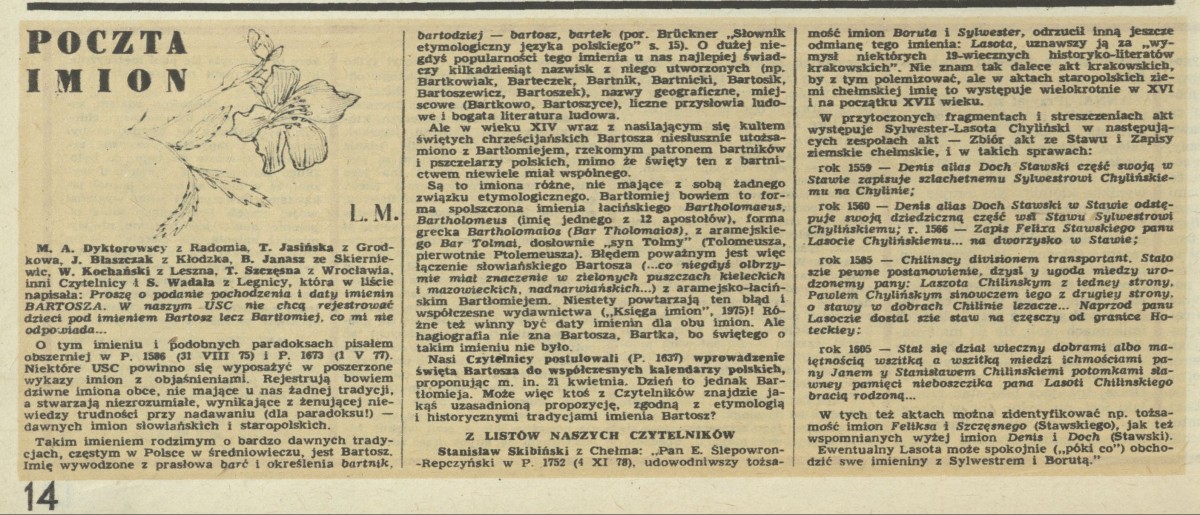 Archiwum / Poczta imion nr 1757 (50/1978) 73750/123969 Podziel się Tytuł Poczta imion Rubryka Poczta imion Artykuł z numeru 1757 (50/1978) Data wydania 10 grudnia 1978
