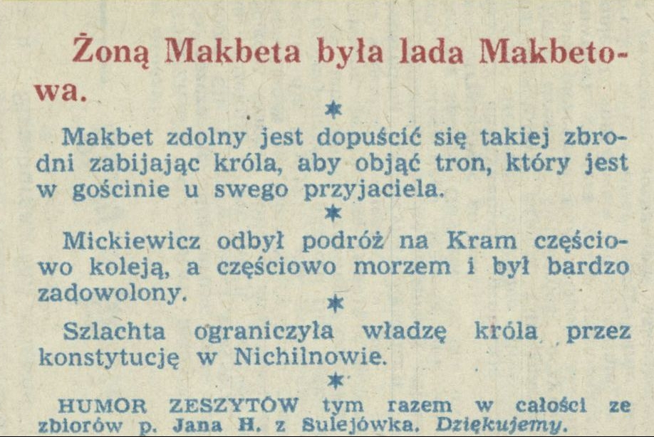 Archiwum / Humor zeszytów szkolnych nr 2036 (25/1984) 40/68 Podziel się Tytuł Humor zeszytów Rubryka Humor zeszytów szkolnych Artykuł z numeru 2036 (25/1984) Data wydania 17 czerwca 1984 Tagi humor zeszyt
