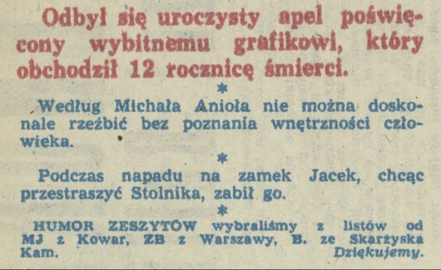 Archiwum / Humor zeszytów szkolnych nr 2038 (27/1984) 117/370 Podziel się Tytuł Humor zeszytów Rubryka Humor zeszytów szkolnych Artykuł z numeru 2038 (27/1984) Data wydania 7 lipca 1984 Tagi humor zeszyt