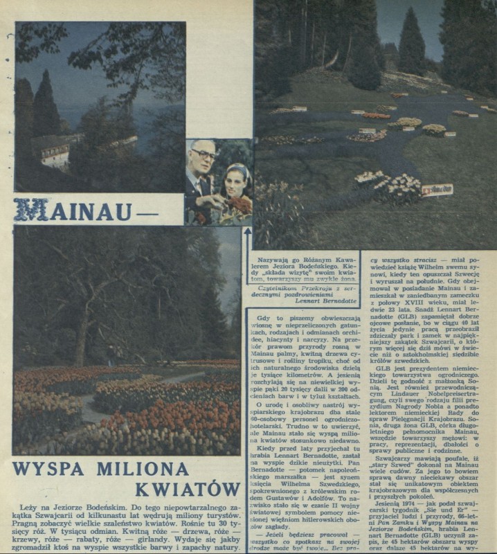 Archiwum / Fotoreportaż nr 1620 (17/1976) 08/19 Podziel się Tytuł Mainau-wyspa miliona kwiarów Autor Zbigniew Święch Kategoria Fotoreportaż Artykuł z numeru 1620 (17/1976) Data wydania 25 kwietnia 1976 Tagi ogród kwiatowy Mainau Nagroda Europy