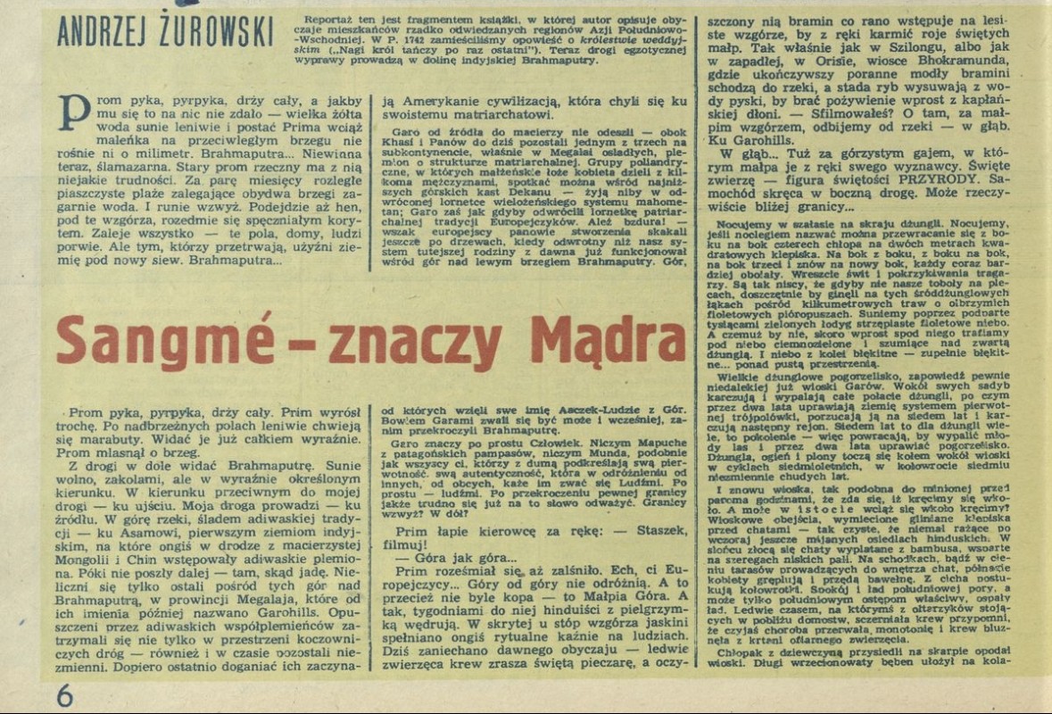 Archiwum / Relacja nr 1746 (39/1978) 06/29 Podziel się Tytuł Sangme - znaczy mądra Autor Andrzej Żurowski Kategoria Relacja Artykuł z numeru 1746 (39/1978) Data wydania 24 września 1978 Tagi Indie podróż
