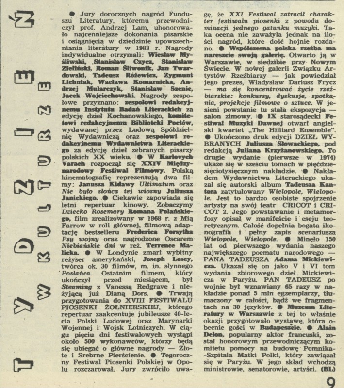 Archiwum / Tydzień w kulturze nr 2039 (28/1984) 270/748 Podziel się Tytuł Tydzień w kulturze Rubryka Tydzień w kulturze Artykuł z numeru 2039 (28/1984) Data wydania 8 lipca 1984