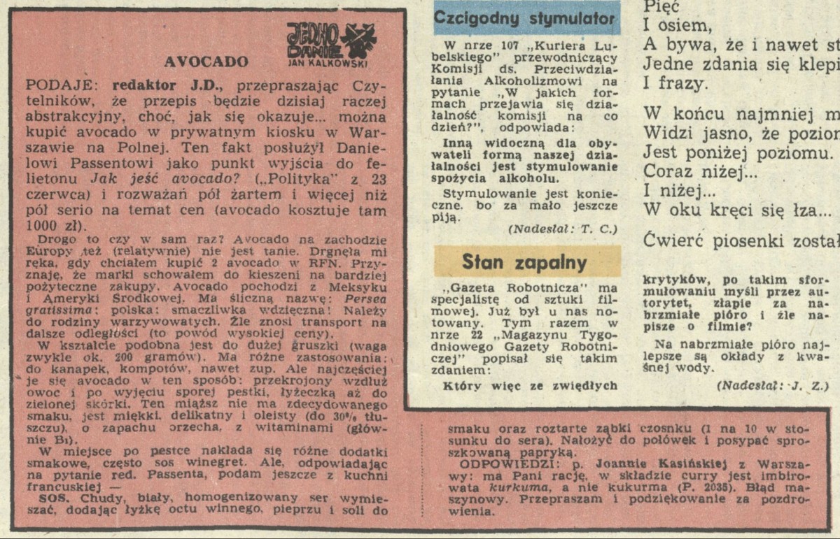 Archiwum / Jedno danie nr 2039 (28/1984) 83839/123969 Podziel się Tytuł Jedno danie Autor Jan Kalkowski Rubryka Jedno danie Artykuł z numeru 2039 (28/1984) Data wydania 8 lipca 1984 Tagi avocado