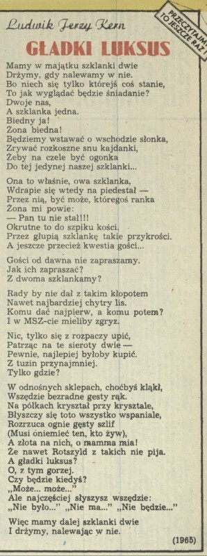 Archiwum / Rozmaitości [old] nr 2043 (32/1984) 32/54 Podziel się Tytuł Gładki luksus Autor Ludwik Jerzy Kern Rubryka Rozmaitości [old] Artykuł z numeru 2043 (32/1984) Data wydania 5 sierpnia 1984