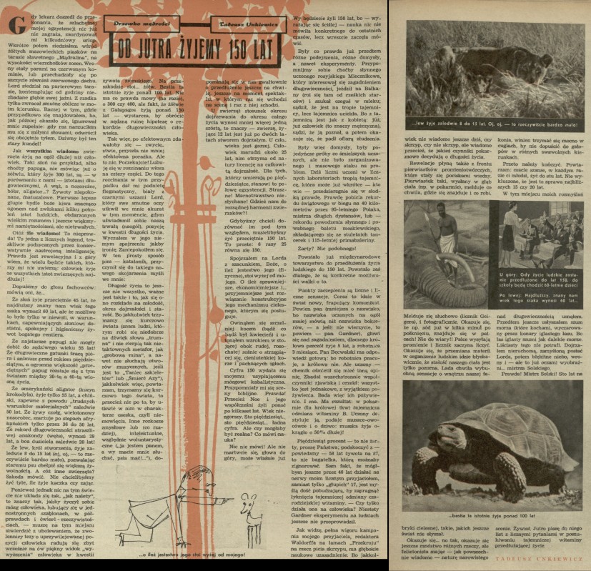 Archiwum / Drzewko mądrości nr 164 (22/1948) 4897/123969 Podziel się Tytuł Od jutra żyjemy 150 lat Autor Tadeusz Unkiewicz Rubryka Drzewko mądrości Artykuł z numeru 164 (22/1948) Data wydania 30 maja 1948 Tagi zwierzęta wiek życie długowieczność