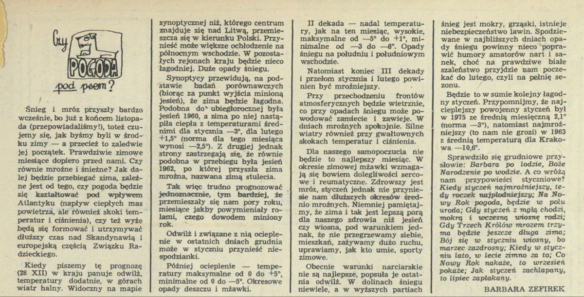 Archiwum / Czy pogoda pod psem? nr 1761 (01/1979) 156/237 Podziel się Tytuł Czy pogoda pod psem? Autor Barbara Zefirek Rubryka Czy pogoda pod psem? Artykuł z numeru 1761 (1/1979) Data wydania 7 stycznia 1979 Tagi prognoza pogody meteorologia