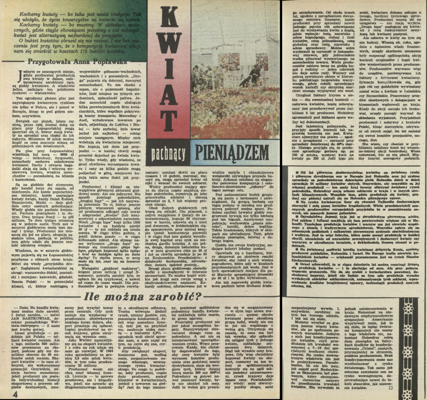 Archiwum / Artykuł nr 2275 (03/1989) 205/246 Podziel się Tytuł Kwiat pachnący pieniądzem Autor Anna Popławska Kategoria Artykuł Artykuł z numeru 2275 (3/1989) Data wydania 15 stycznia 1989 Tagi kwiaty produkcja kwiatów kwiaciarswtwo przemysł kwiatowy