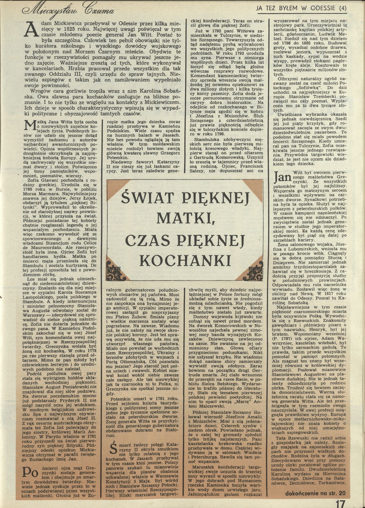 Archiwum / Proza nr 1771 (11/1979) 02/10 Podziel się Tytuł Świat pieknej matki , czas pięknej kochanki Autor Mieczysław Czuma Kategoria Proza Artykuł z numeru 1771 (11/1979) Data wydania 18 marca 1979