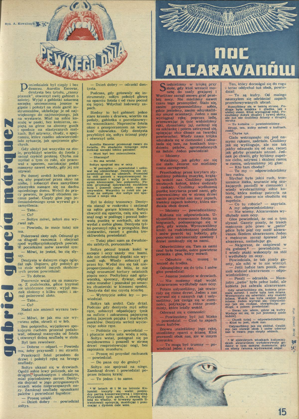 Archiwum / Opowiadanie nr 1725 (18/1978) 72352/123969 Podziel się Tytuł Pewnego dnia Autor Gabriel Garcia Marquez Joanna Jurczyńska Kategoria Opowiadanie Artykuł z numeru 1725 (18/1978) Data wydania 30 kwietnia 1978
