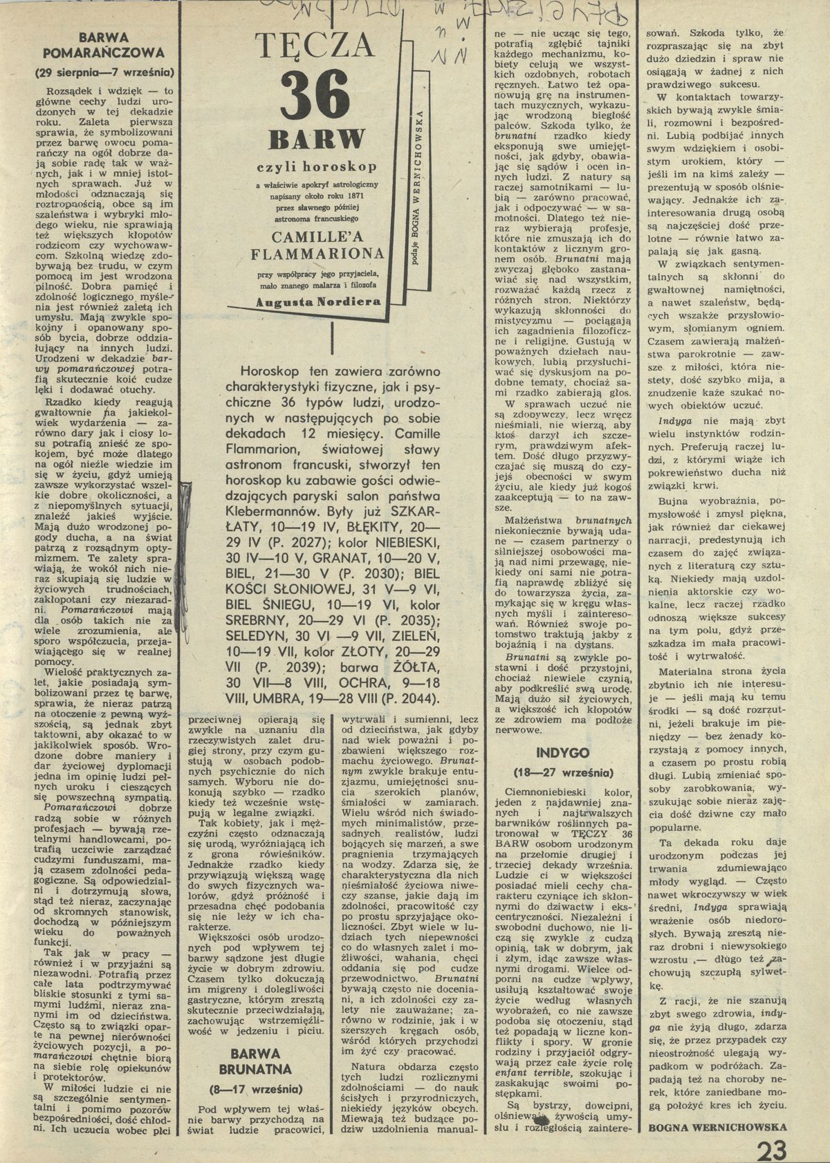 Archiwum / Rozrywka nr 2048 (37/1984) 84204/123969 Podziel się Tytuł Horoskop Kategoria Rozrywka Artykuł z numeru 2048 (37/1984) Data wydania 9 września 1984 Tagi horoskop barw