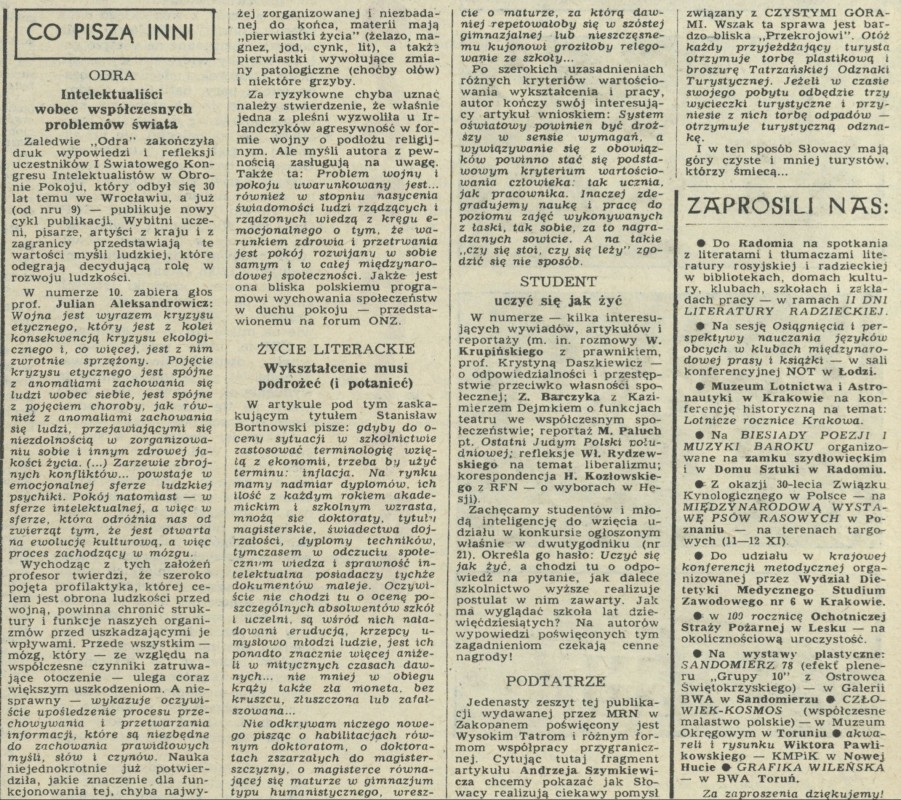 Archiwum / Co piszą inni nr 1752 (45/1978) 30/33 Podziel się Tytuł Co piszą inni Rubryka Co piszą inni Artykuł z numeru 1752 (45/1978) Data wydania 5 listopada 1978 Tagi rozwój ludzkości wykształcenie nauka studenci