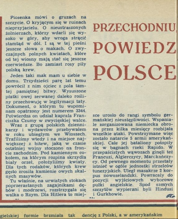 Archiwum / Relacja nr 1780 (20/1979) 74610/123969 Podziel się Tytuł Przechodniu powiedz Polsce Autor Mieczysław Czuma Kategoria Relacja Artykuł z numeru 1780 (20/1979) Data wydania 20 maja 1979