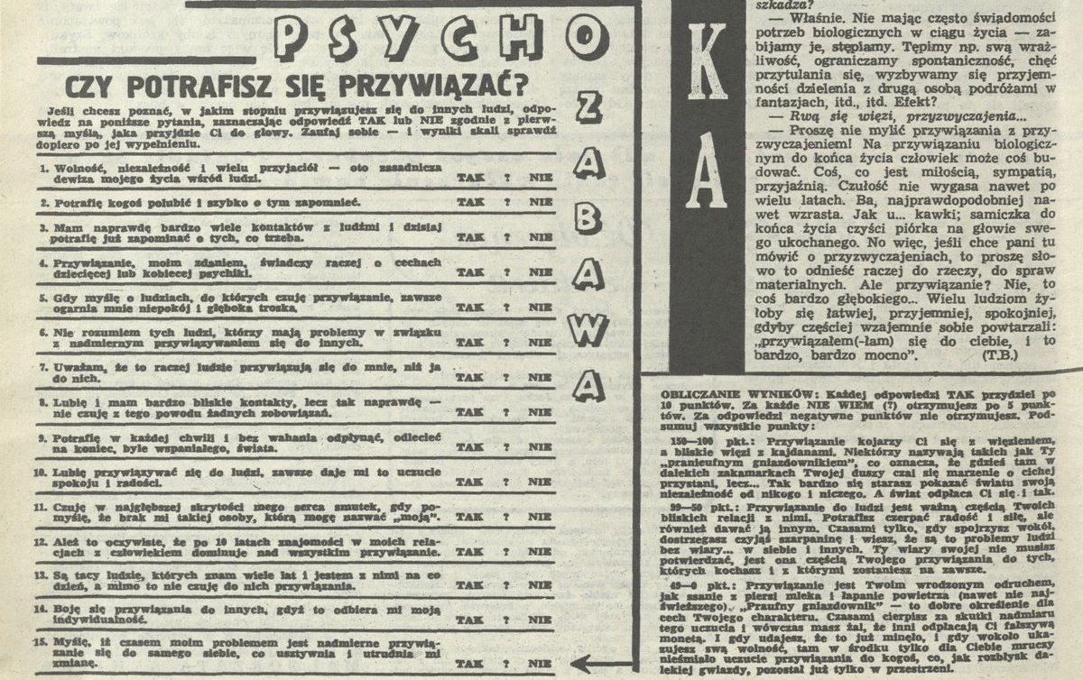 Archiwum / Psychozabawa nr 2279 (07/1989) 93761/123969 Podziel się Tytuł Psychozabawa: czy potrafisz się przywiązać? Rubryka Psychozabawa Artykuł z numeru 2279 (7/1989) Data wydania 12 lutego 1989 Tagi przywiązanie