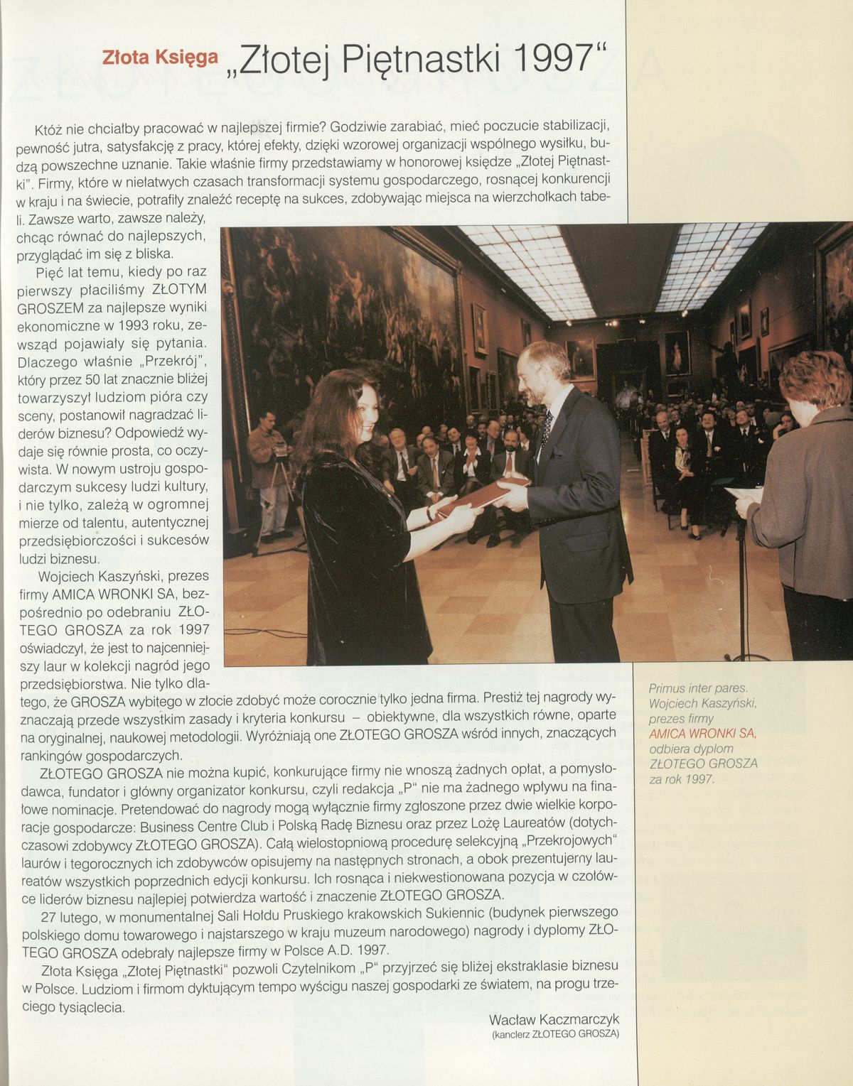 Archiwum / Artykuł nr specjalny 1/1998 23/41 Podziel się Tytuł Złota Księga Autor Wacław Kaczmarczyk Kategoria Artykuł Artykuł z numeru nr specjalny 1/1998 Data wydania 1 stycznia 1998 Tagi najlepsze firmy w Polsce złoty grosz Grosz Króla Kazimierza Złota Piętnastka Wojciech Kaszyński Amica Wronki S.A.