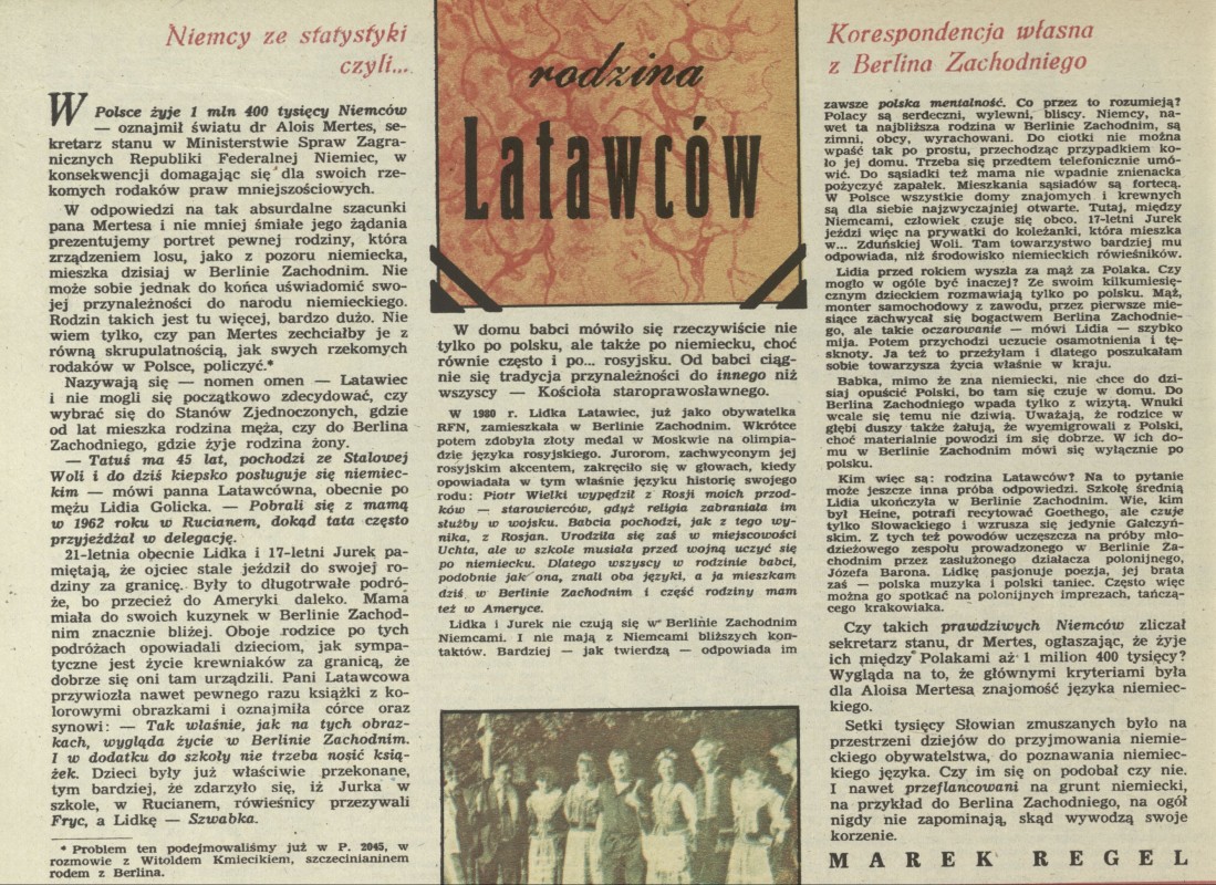 Archiwum / korespondencja własna "Przekroju" nr 2054 (43/1984) 5/5 Podziel się Tytuł Rodzina latawców Autor Marek Regel Rubryka korespondencja własna "Przekroju" Artykuł z numeru 2054 (43/1984) Data wydania 21 października 1984 Tagi Niemcy